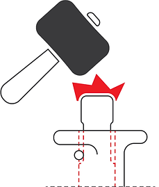 2. ขณะตัวช่วยตอกนี้ประคองไว้อยู่ ให้ทุบปุ่มตามภาพด้านล่าง หลายๆ ครั้ง จนกระทั่งลวดเย็บเข้าที่ แน่นหนา